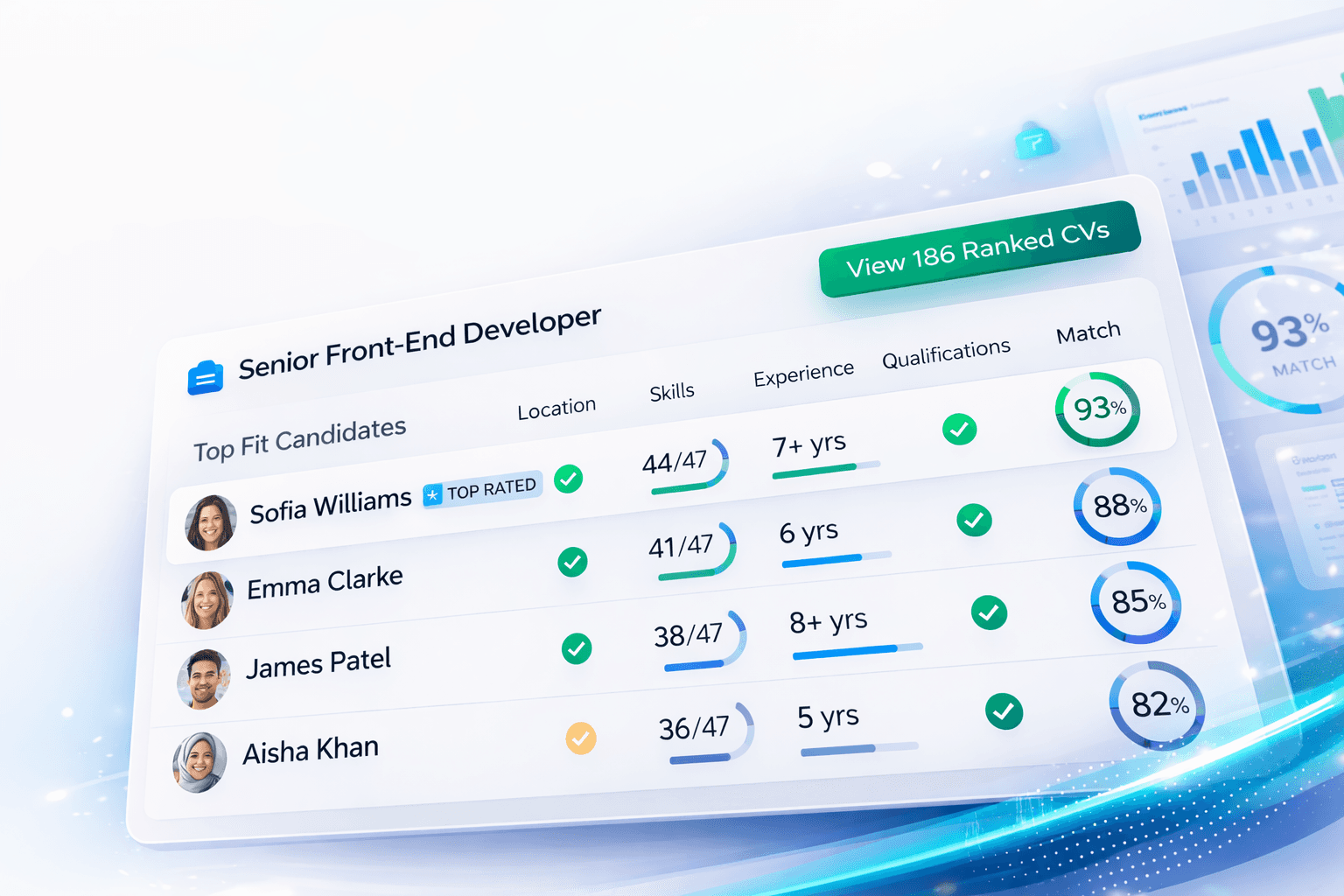 Explainable CV-to-job matching that ranks applicants in seconds inside your ATS or as a standalone platform.